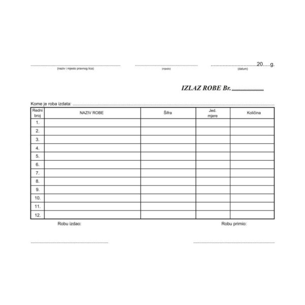 Izlaz Robe A5 NCR G130