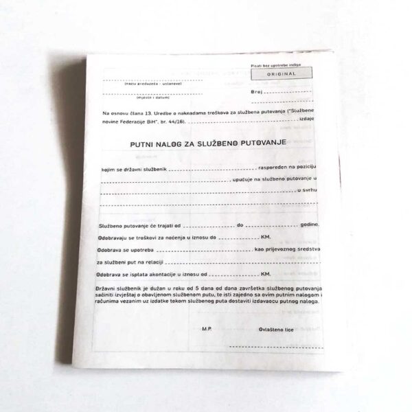 Nalog za službeno putovanje 1/1 G125
