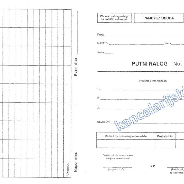 Putni Nalog za Putnicko Vozilo PN4 Blok G037